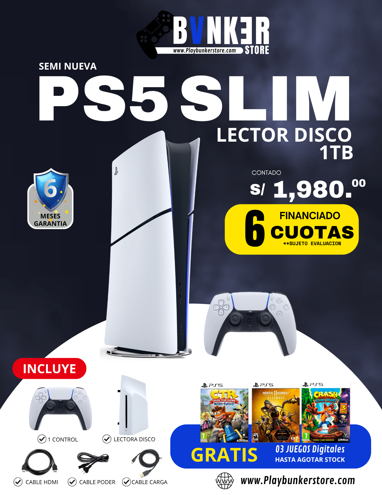 🎮 Tenemos disponible  PS5 SLIM con Lector de Discos de 1TB Le incluye: